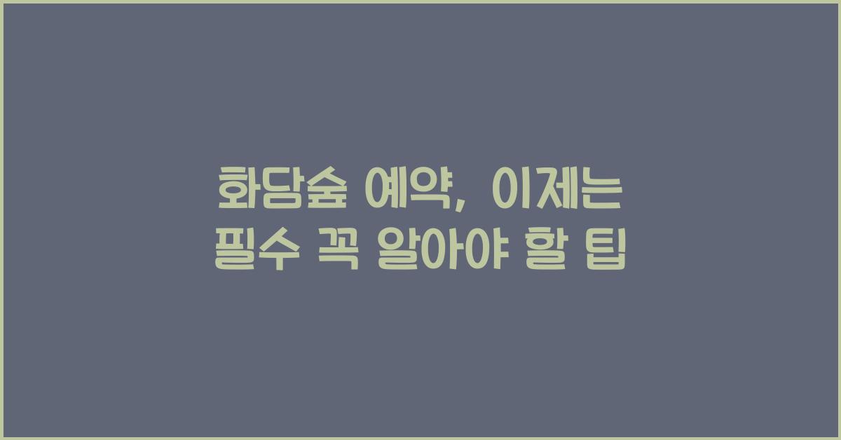 곤지암 화담숲 예약, 왜 중요한가?곤지암 화담숲 예약은 여러분의 아름다운 자연 경험을 담보하는 중요한 단계입니다. 모르고 예약을 하지 않으면, 그 멋진 풍경을 놓치게 될지도 모릅니다. 인기 있는 관광지인 만큼, 미리 예약을 해두면 마음의 평화를 얻고 여행 계획을 더 잘 짜낼 수 있습니다. 특히 주말이나 연휴에는 더 많은 인파가 몰리기 때문에, 예약 없이는 길게 줄 서는 경우가 흔합니다. 따라서 곤지암 화담숲을 방문하고자 한다면 사전 예약은 필수입니다.곤지암 화담숲 예약 더 알아보기곤지암 화담숲의 매력곤지암 화담숲은 그 풍경이 마치 그림 같은 아름다움을 지니고 있어, 방문한 이들을 매료시킵니다. 푸릇한 나무와 아름다운 꽃들이 어우러져 만들어 내는 경치, 그리고 따스한 햇살 아래에서의 산책은 삶의 질을 높여..