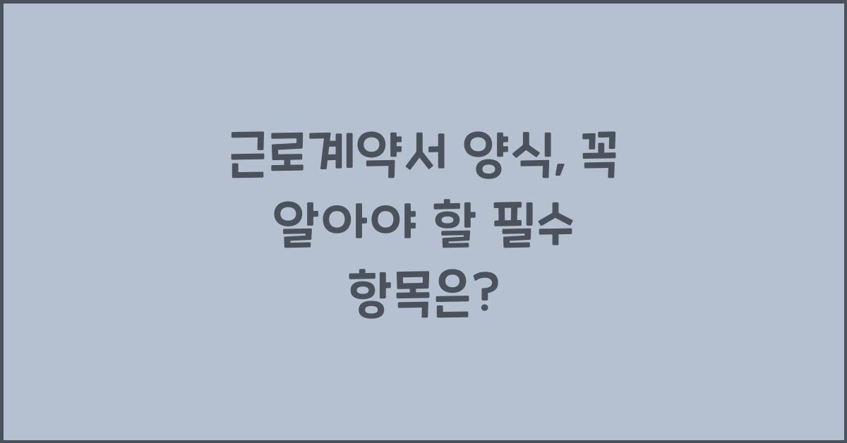 📄 근로계약서 양식의 중요성여러분, 근로계약서 양식이 얼마나 중요한지 아시나요? 처음 일을 시작할 때 근로계약서 양식은 반드시 확인해야 할 문서 중 하나에요. 이 문서는 고용자와 근로자 간의 약속이 담겨져 있으니, 소중히 다뤄야 합니다. 계약서가 잘 작성되면, 일이 잘 풀리는 경우가 많습니다. 이는 어떤 사람이 무엇을 하고, 얼마를 받는지를 문서로 명확히 정리하는 것이기 때문입니다.근로계약서 양식 더 알아보기어쩌면 여러분도 최근에 일을 시작하면서 근로계약서를 작성했을지도 몰라요. 하지만 꼭 필요한 항목들이 빠졌다면 나중에 큰 문제가 될 수 있습니다. 저도 첫 아르바이트를 시작했을 때, 근로계약서를 제대로 챙기지 못한 적이 있어요. 그때 경험으로, 계약서의 소중함을 뼈저리게 느꼈습니다.그렇다면 근로계약서..